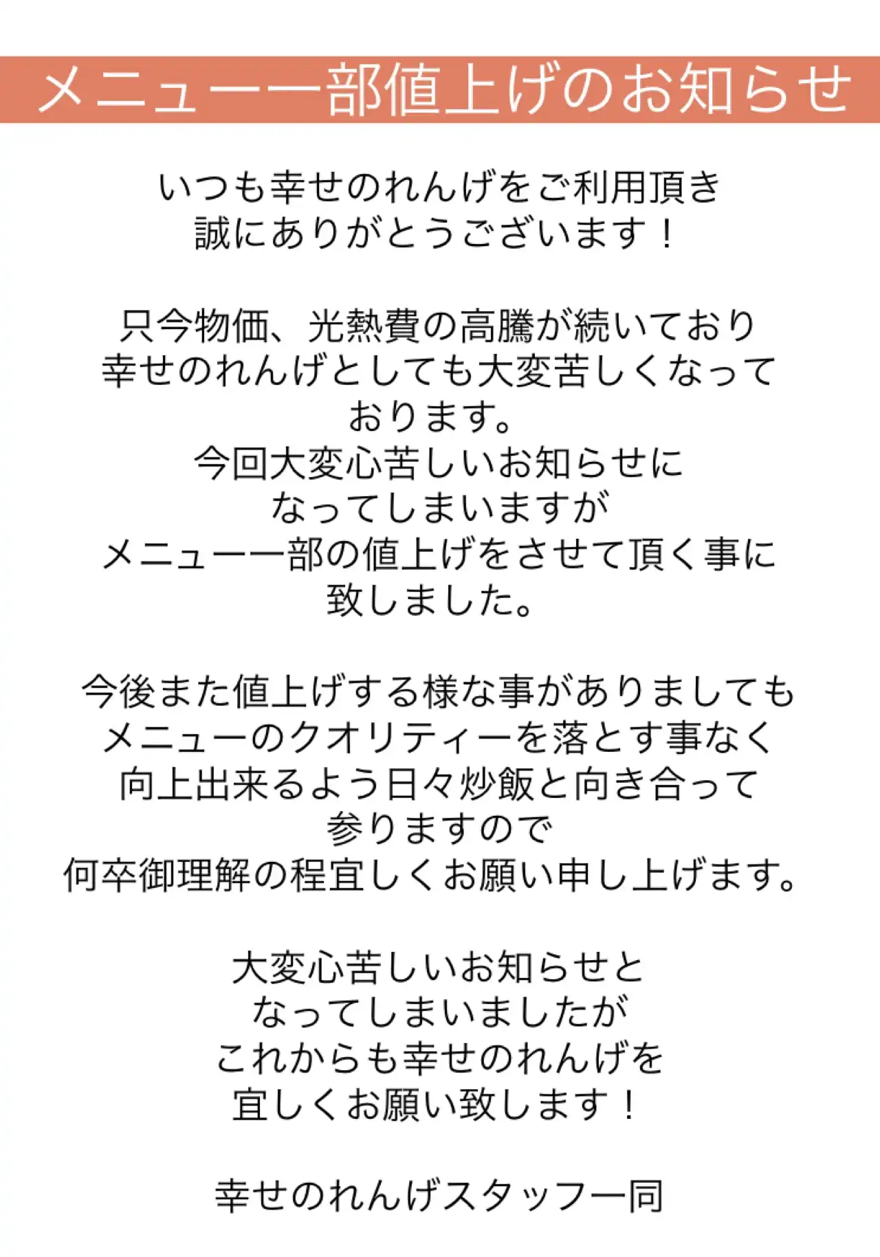 🙇♂️日替りランチ値上げのお知らせ🙇♂️